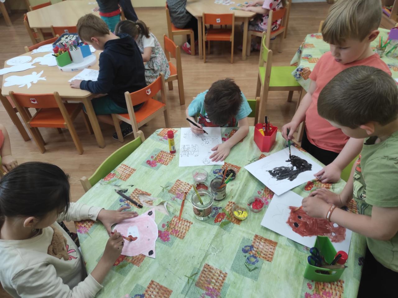 Zvířátka - práce s vodovými barvami.