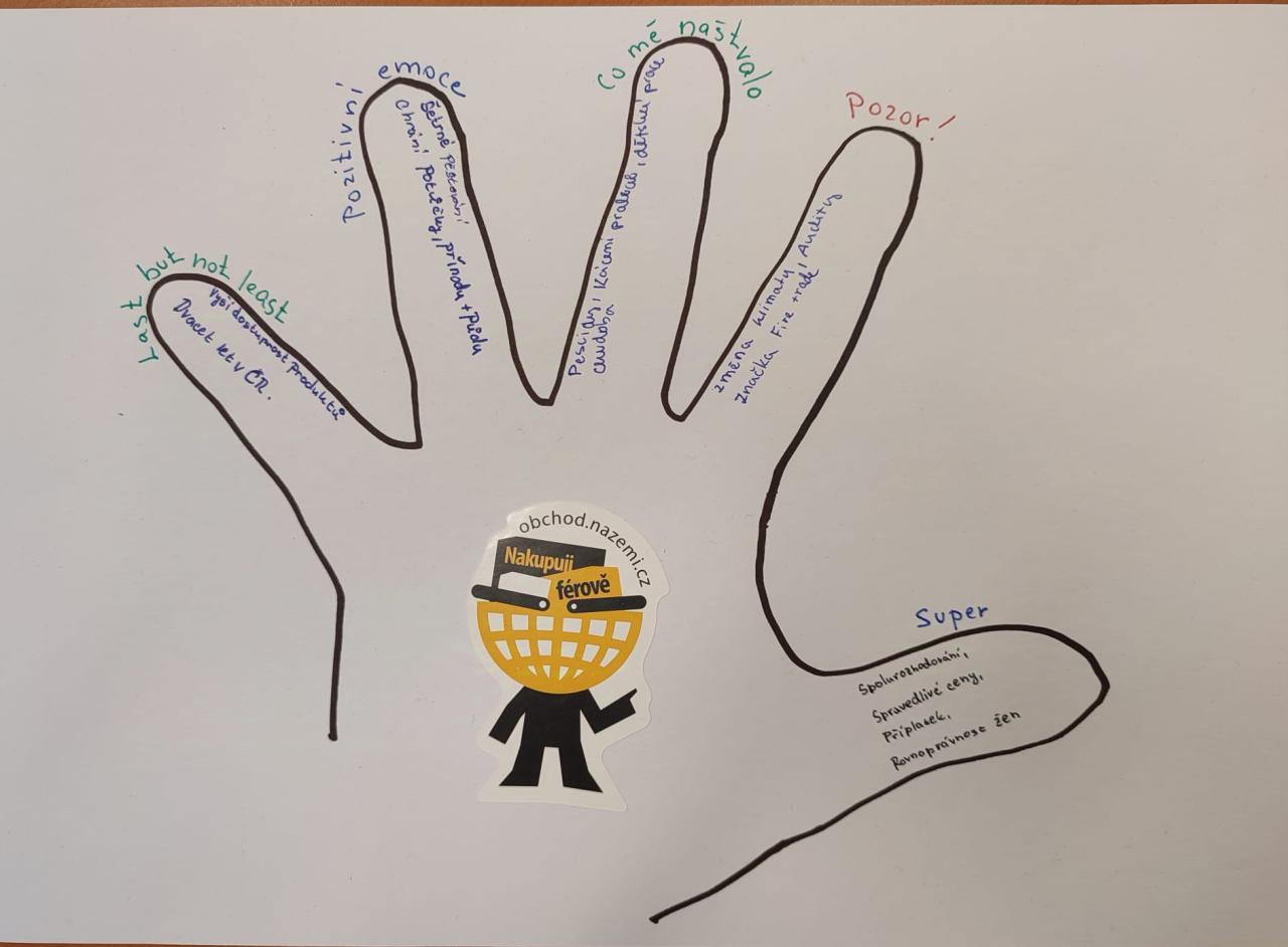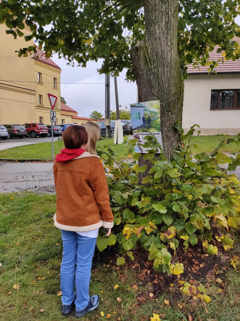 Poté vyrazili do parku na výstavu, kde si přečetli informace o Fairtrade. Informace následně zpracovali do jednoduchého schématu. Kromě toho vytvořili také výstavku, kde představili různé produkty se značkou Fairtrade. Cílem této výstavky bylo ukázat, že tyto produkty jsou běžně dostupné v supermarketech.