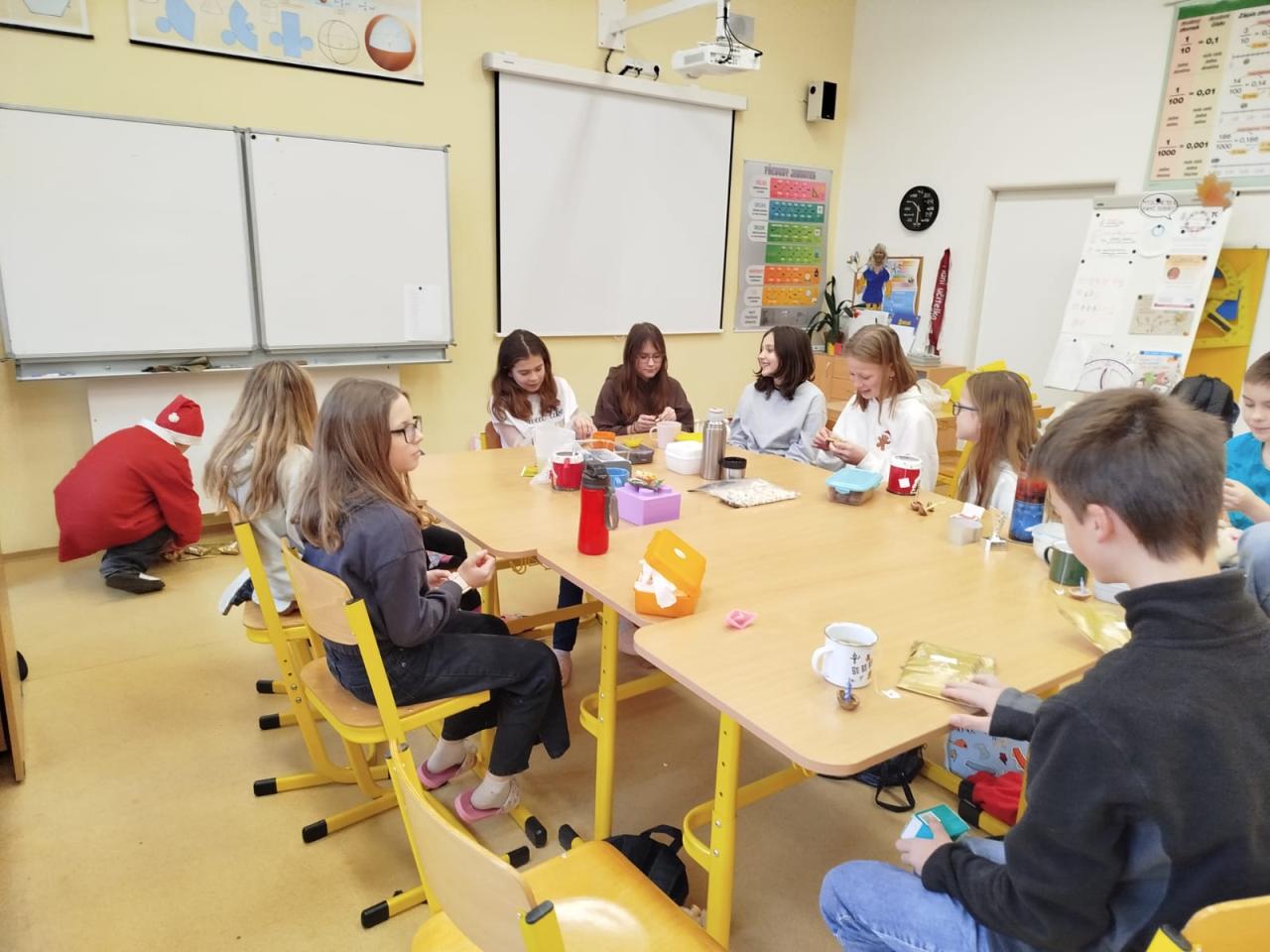 Poslední školní den před vánočními prázdninami se nesl ve velmi příjemné a slavnostní atmosféře. Všichni přišli do školy s dobrou náladou a těšením se na nadcházející svátky.